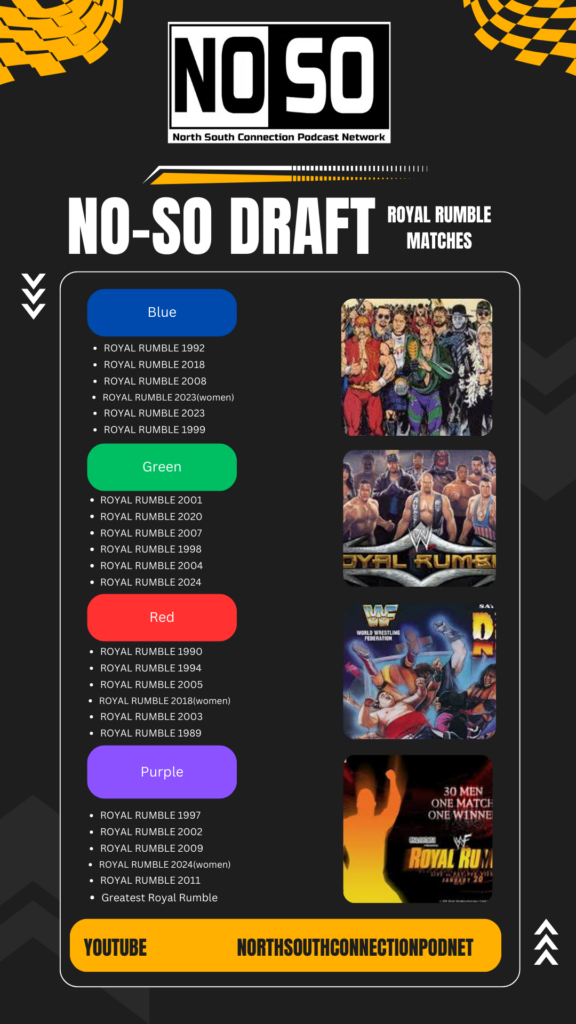 In this episode of NoSo Draft, hosts JT Rozzero & Ryan Gray welcome Aaron George & Tim Taylor to compete in a draft for the best grouping of Royal Rumble Matches! Tune in, play along, and then VOTE for the best roster in the comments below!