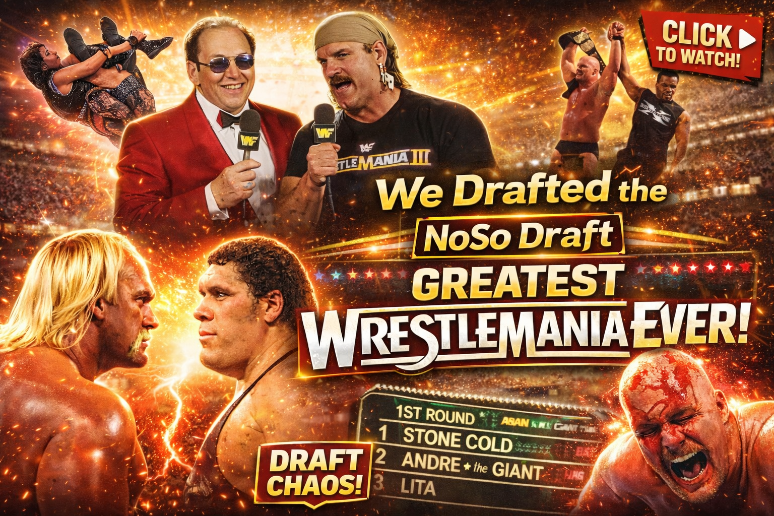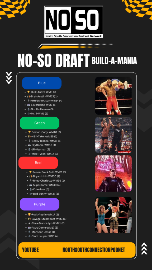 In this episode of NoSo Draft, hosts Ryan Gray & JT Rozzero welcome Dave Hall & Logan Crosland to compete in a draft for the best grouping of Building a WrestleMania card! Tune in, play along, and then VOTE for the best roster in the comments below!
