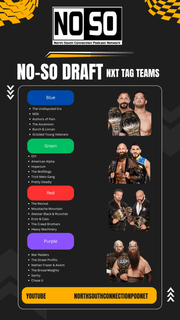 In this episode of NoSo Draft, host JT Rozzero & Ryan Gray welcome Richie Mars & Mike Rossi, and they compete in a draft, to draft the best NXT Tag Teams.